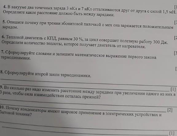 [1] 4. В вакууме два точечных заряда 3 нКл и 7 нКл отталкиваются друг от друга с силой 1,5 мн. Определите какое расстояние должно быть между зарядами.