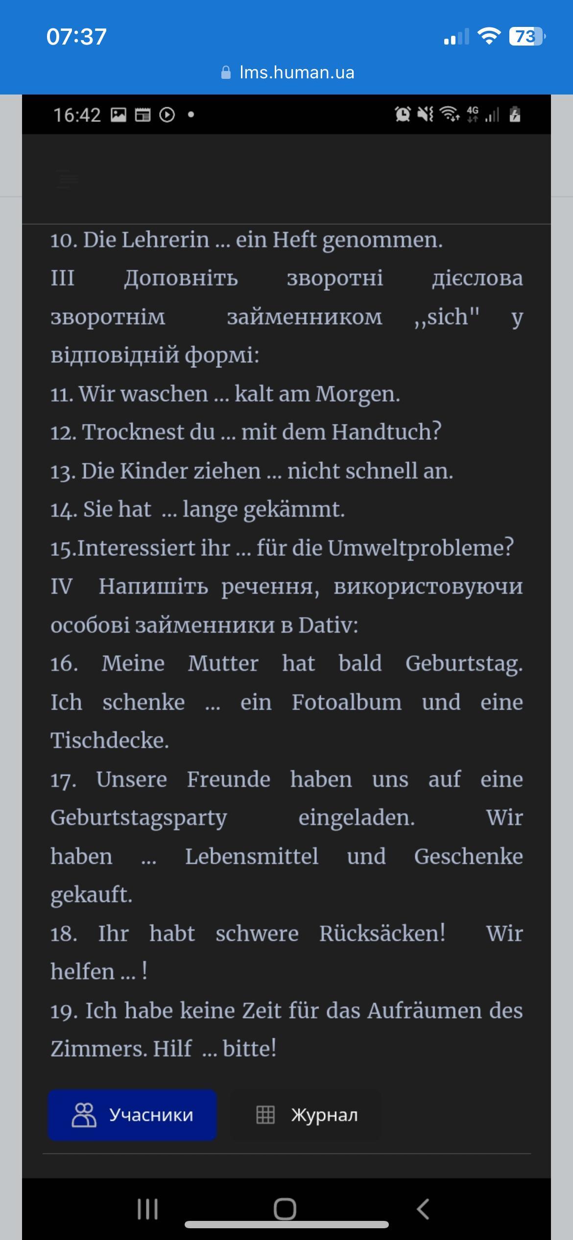 16. Meine Mutter hat bald Geburtstag. Ich schenke ihr ein Fotoalbum und eine Tischdecke.