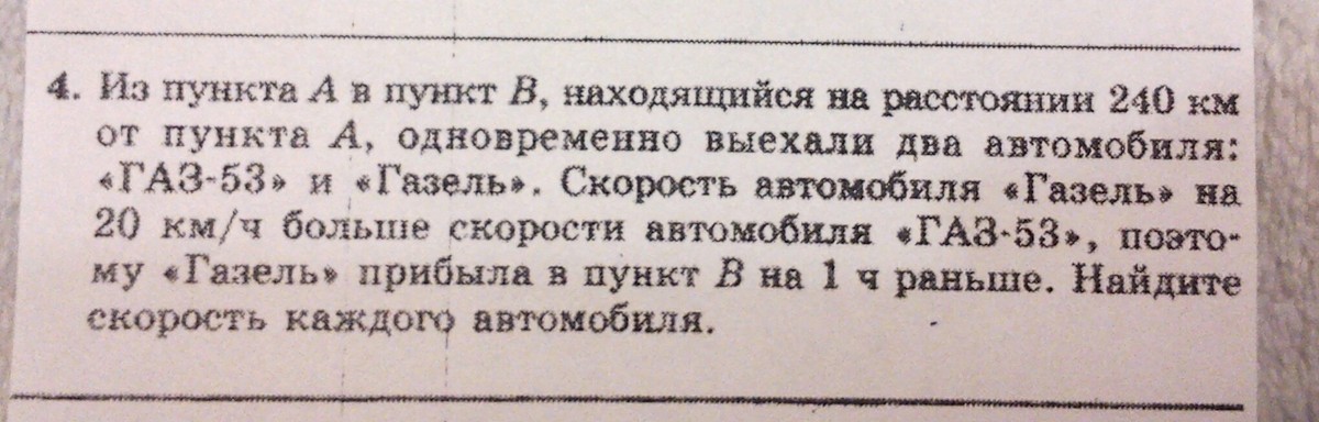 Газель проехала быстрее, значит 240/х больше чем 240/(х+20) на 1
