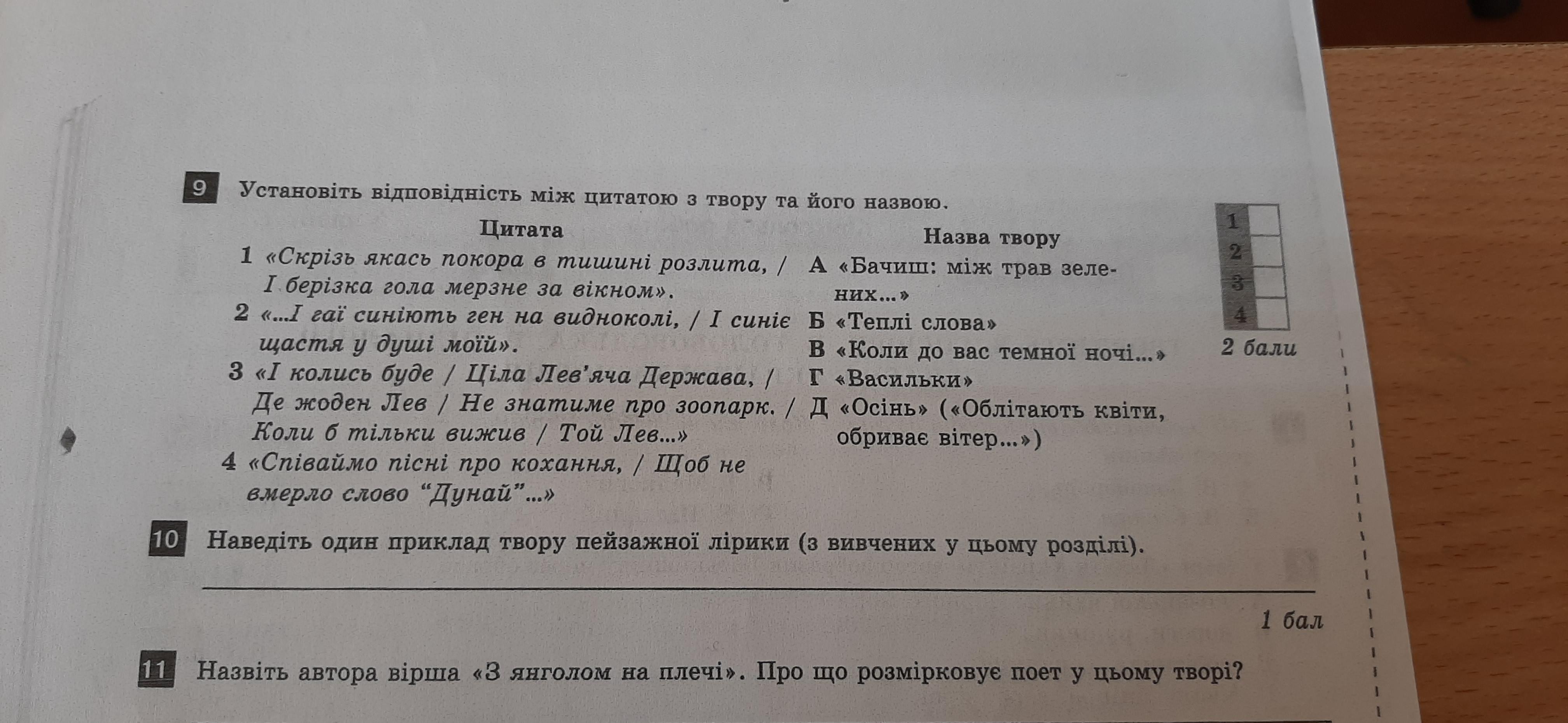1. Щоб геть аж під ясній зорі - А. "Хотіла б я піснею стати" Леся Українка