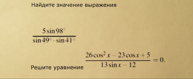 5sin98/sin49*sin41=10sin49*cos49/sin49*sin41=10cos49/sin(90-49)=10cos49/cos49=10. Смотри,здесь сначала я расписала синус 98 как двойной угол, потом все подставила, сократила минусы в числителе и знаменателе, затем формула приведения, синус поменяли на кофункцию это косинус, первая четверть, синус положительный расписали, сократили и получили 10 в ответе.