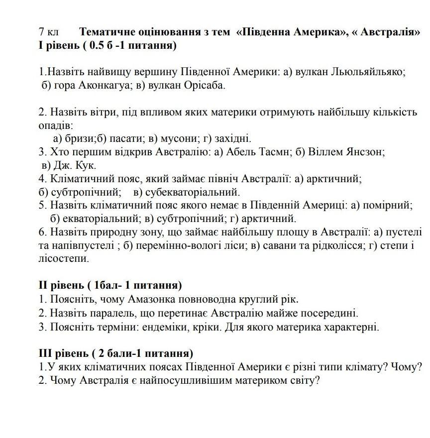 1. У тропічному, субтропічному, помірному. Різний рельєф, на заході гори Анди, на сході рівнинний; різні течії біля берегів материка; пасати на східному узбережжі.