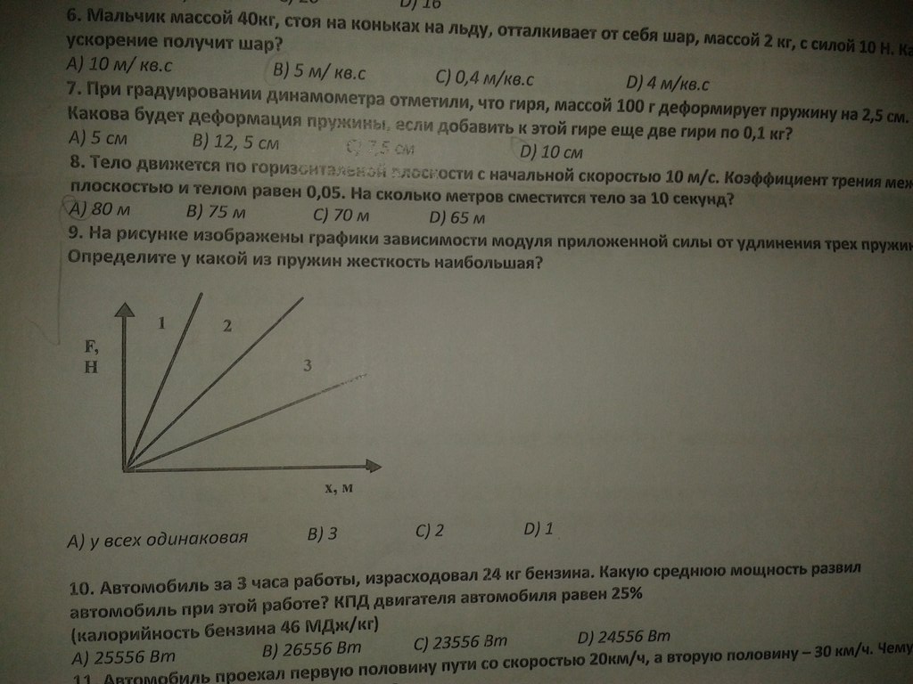 помогите на рисунке изображены графики зависимости модуля приложенной силы от удлинения трех пружин определите у какой пружины жестокость наибольшая