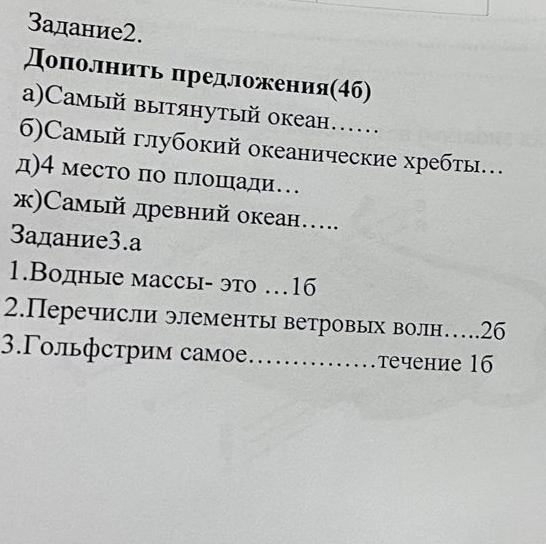 1)Водные массы — это большие объемы воды, образующиеся в определенных частях океана и отличающиеся друг от друга температурой, соленостью, плотностью, прозрачностью, количеством кислорода и другими свойствами