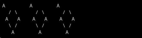 Где каждая точка "A" представляет атом калия в узле кристаллической решетки. Сферический стержень отображает примерный размер атома.