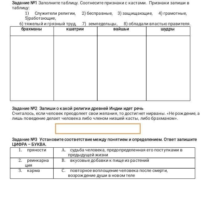 | Шудры | 1. Работа по найму 2. Служба в доме хозяина | 1. Выполнение различных работ 2. Помощь в домашнем хозяйстве |