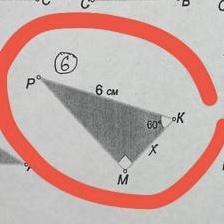 Поскольку угол РКМ=60°, а угол РМК — прямой, то угол МРК=30°. Тогда МК=РК/2=6/2=3 см.
