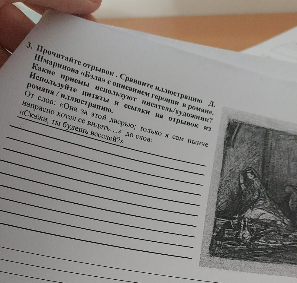 К сожалению, я не могу прочитать отрывок прямо сейчас, но могу помочь в общих чертах сравнить иллюстрацию Д. Шмаринова «Бэла» с описанием героини в романе.
