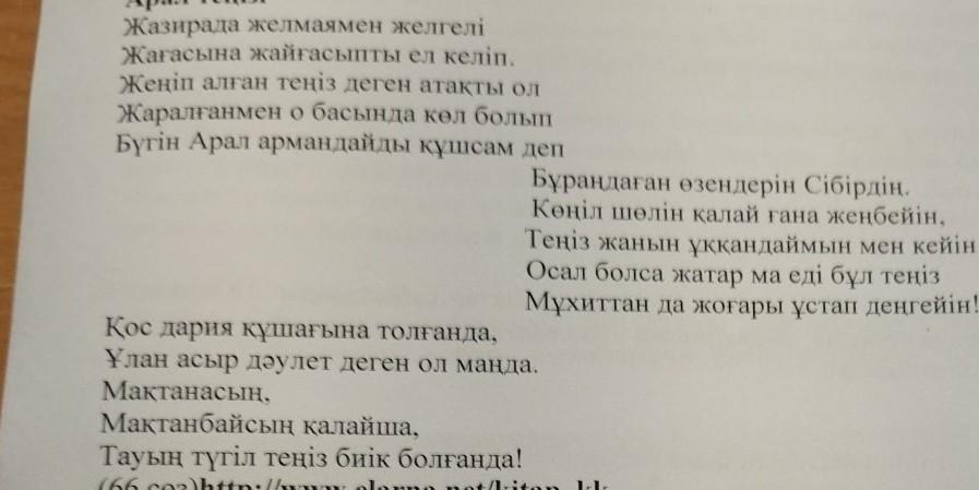 Мәтіннің мазмұны Арал теңізінің апаты жайында және оны қалпына келтіру жайында.