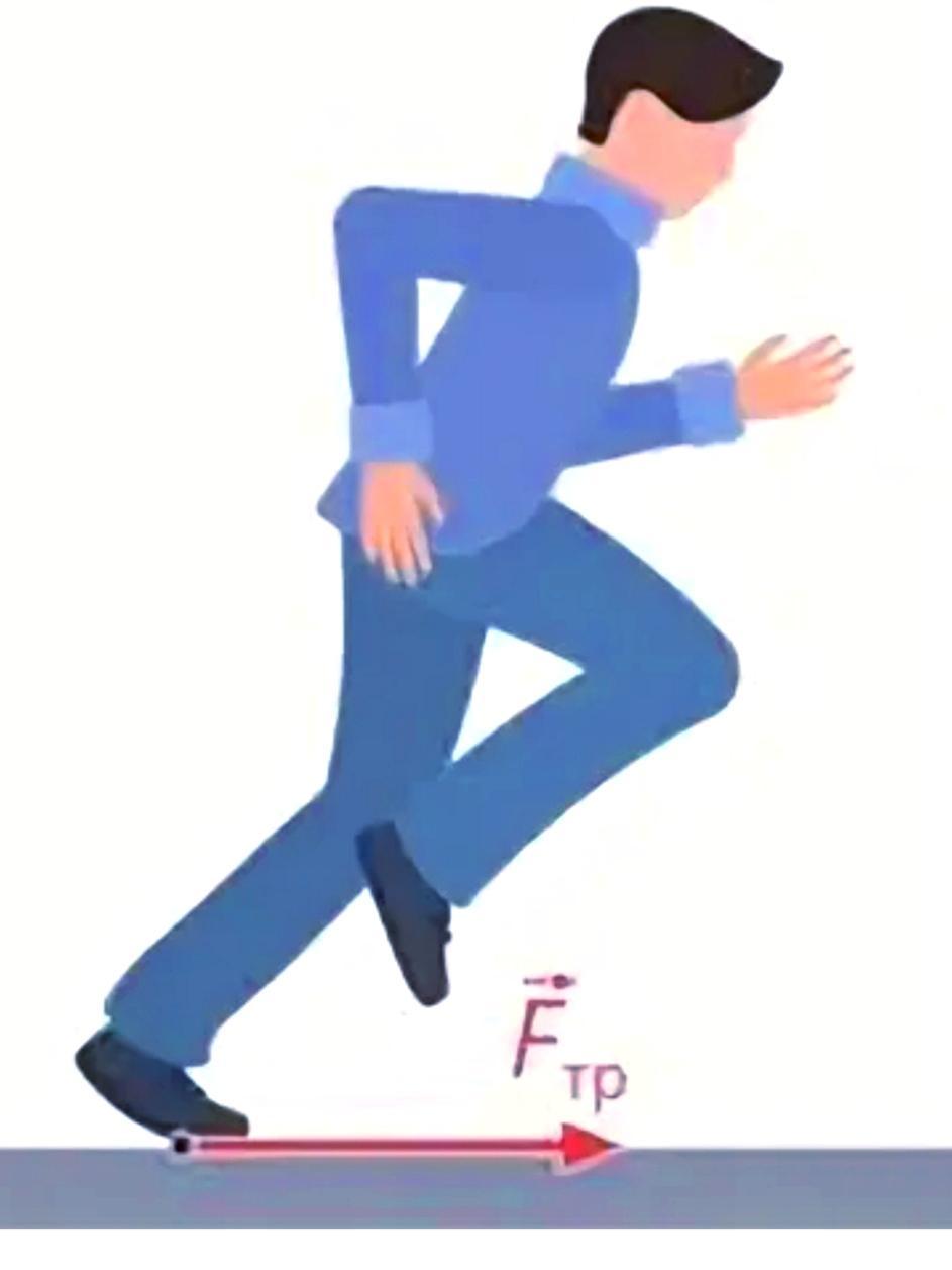 Человек ходит за счёт трения покоя. Он отталкивается ногой от дороги, нога не скользит за счёт трения. Делает шаг и идёт.