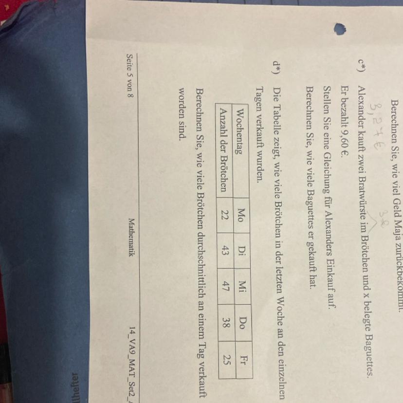 d*) Die Tabelle zeigt, wie viele Brötchen in der letzten Woche an den einzelnen