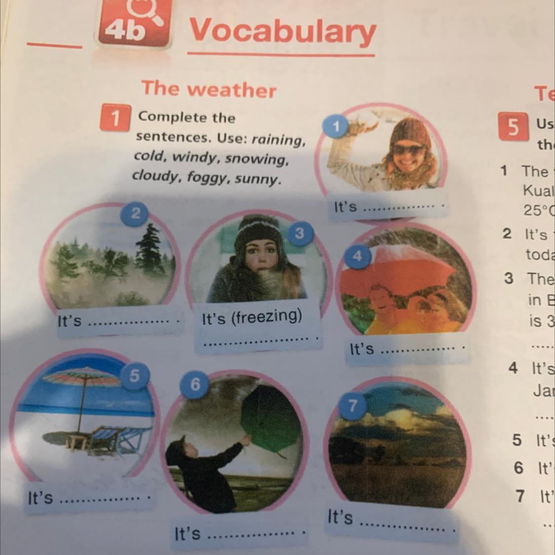 sentences. Use: raining,