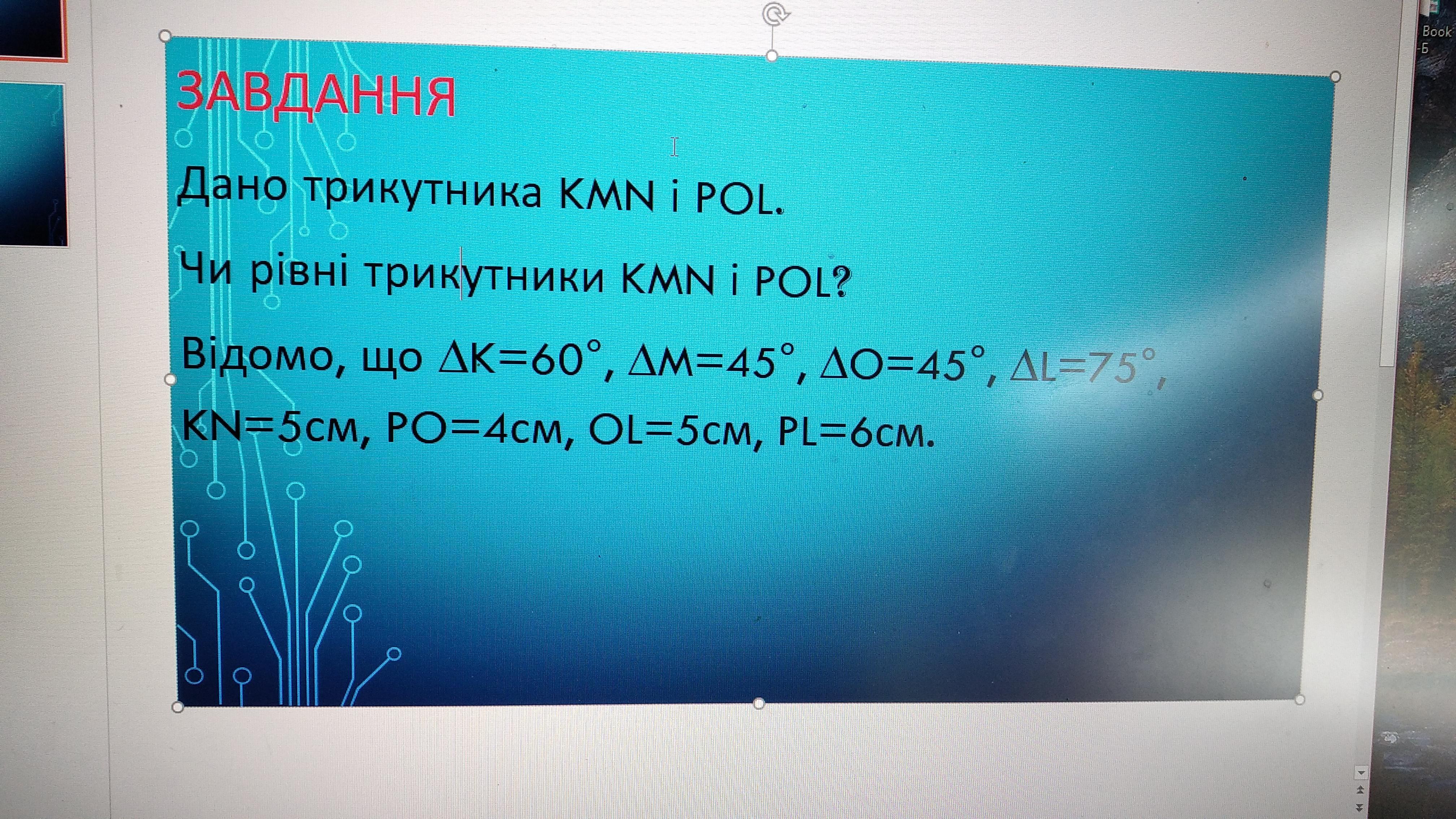 У ΔKMN i ΔPOL відповідні кути рівні . Дійсно :