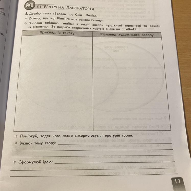 Запоани таблицю: знайди в тексті засоби художнют виразноси то