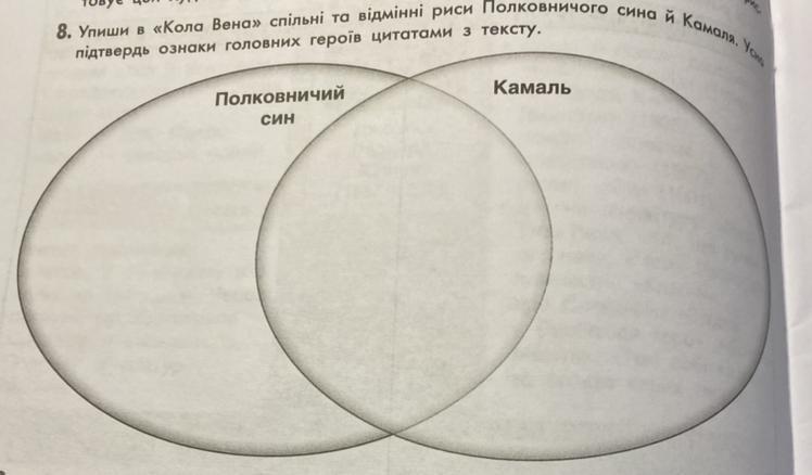 8. Упиши в «Кола Вена» спiльнi та відмінні риси Полковничого сина й Камаля. Уско