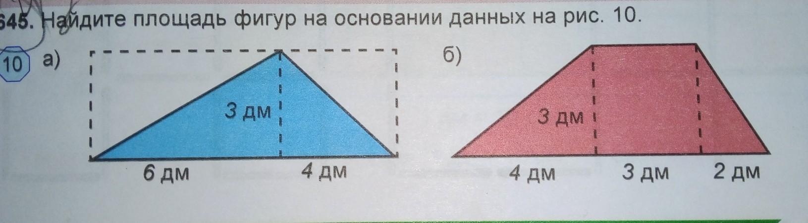 3дм×4дм/2+3дм×6дм/2=6+9=15
