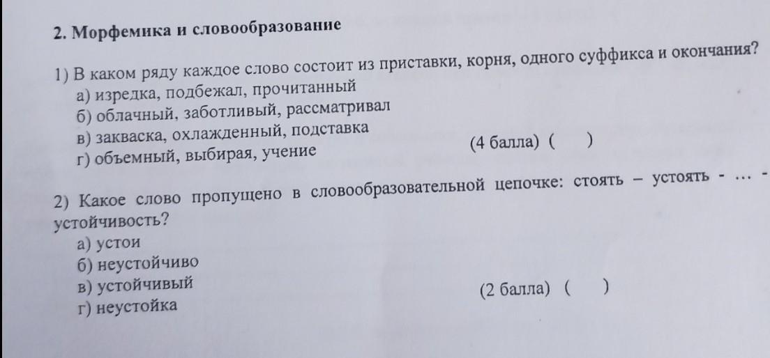 1) В каком ряду каждое слово состоит из приставки, корня, одного суффикса и окончания?