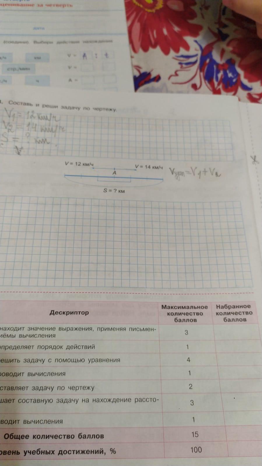 12 + 14 = 26 (км/ч) - скорость удаления двух объектов