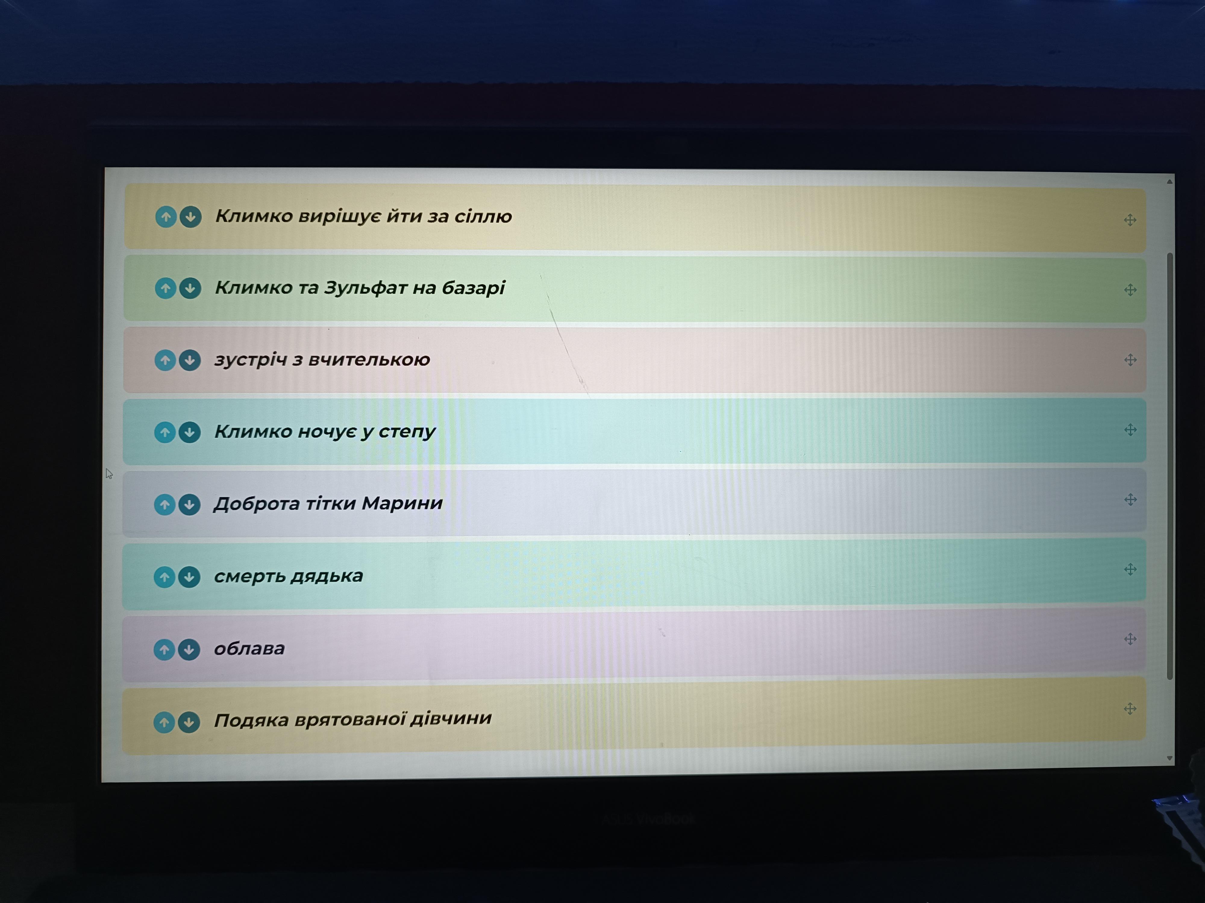 ТРЕБА РОЗТАШУВАТИ В ТОМУ ПОРЯДКУ ЯК ВОНИ ЙДУТЬ У ТВОРІ Г. ТЮТЮННИКА "КЛИМКО"