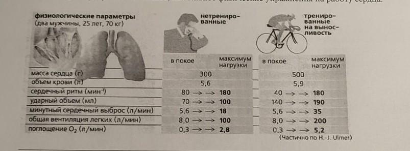 9.Рассмотрите рисунок. Объясните, как влияют физические упражнения на работу сердца.