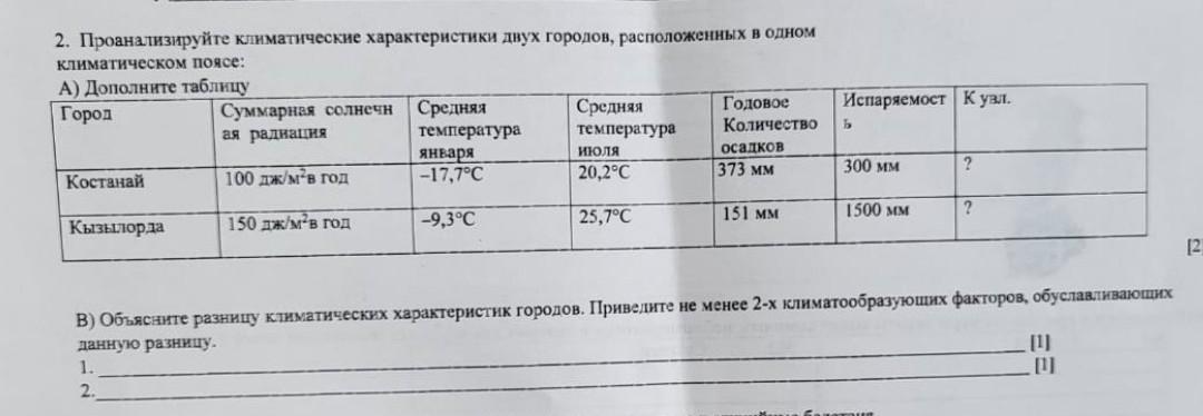 Разница в климатических характеристиках двух городов, Костаная и Кызылорды, может быть обусловлена следующими климатообразующими факторами: