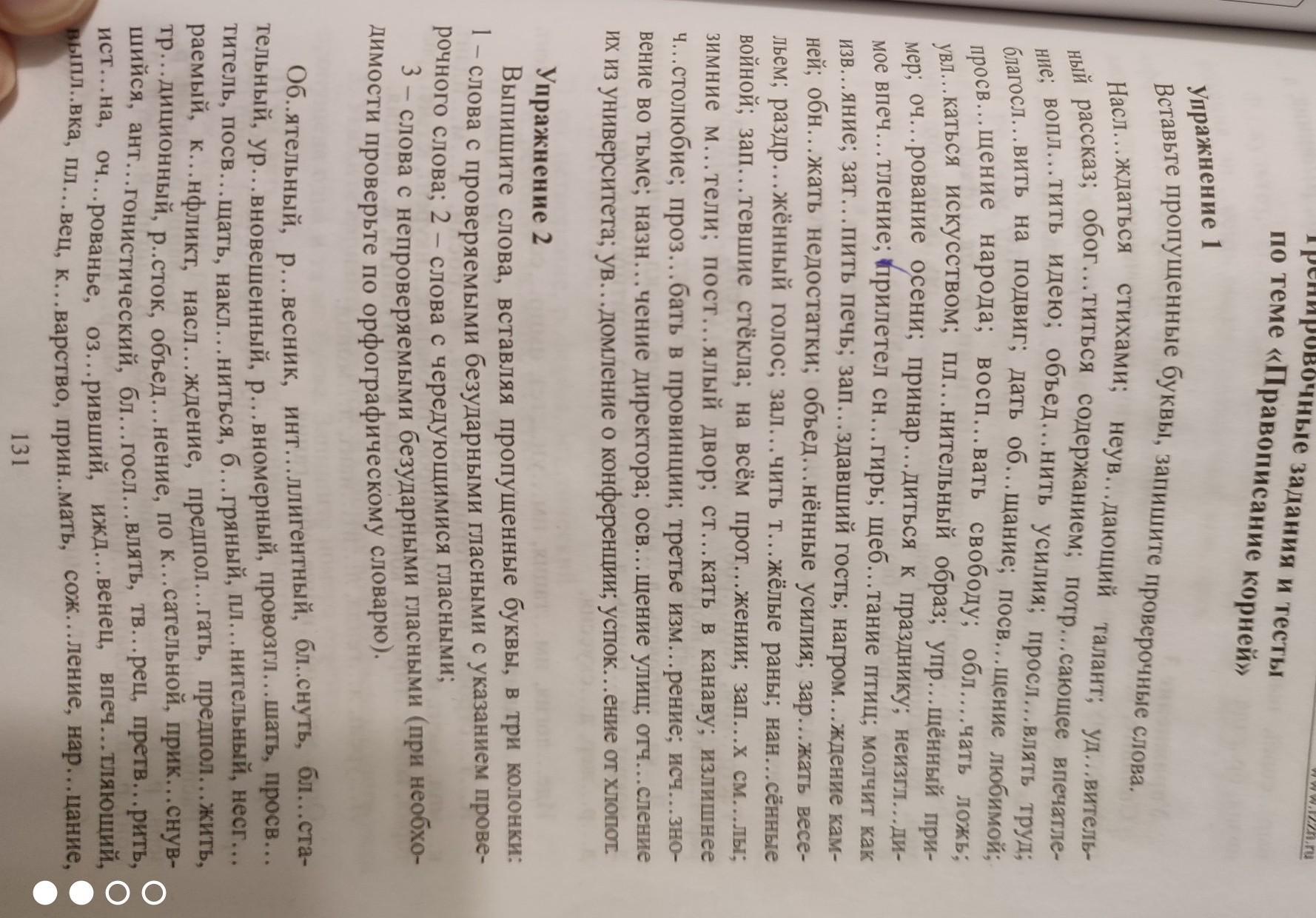 Упражнение 1 Вставьте пропущенные буквы, запишите проверочные слова. Насл...ждаться стихами; неув...дающий талант; уд...витель- ный рассказ; обог...титься содержанием; потр...сающее впечатле- ние; вопл...тить идею; объед...нить усилия; просл...влять труд; благосл...вить на подвиг; дать общание; посв...щение любимой; просв...щение народа; восп...вать свободу; обл....чать ложь; увл...каться искусством; пл...нительный образ; упр...щённый при- мер; оч...рование принар...диться к празднику; неизгл...ди- мое впеч...тление; прилетел сн... гирь; щеб...тание птиц; молчит как изв...яние; зат...пить печь; зап...здавший гость; нагром...ждение кам- ней; обн...жать недостатки; обьед...нённые усилия; зар...жать все- льем; раздржённый голос; зал...чить т...жëлые раны нан...сённые войной; зап.тевшие стёкла; на всём прот...жении; зап..х см...лы; зимние мтели; пост...ялый двор; ст...кать в канаву; излишнее ч...столюбие; проз...бать в провинции; третье изм...рение; исч...зно- вение во тьме; назн...чение директора; осв...щение улиц; отч...сление их из университета; ув...домление о конференции; успок...ение от хлопот.