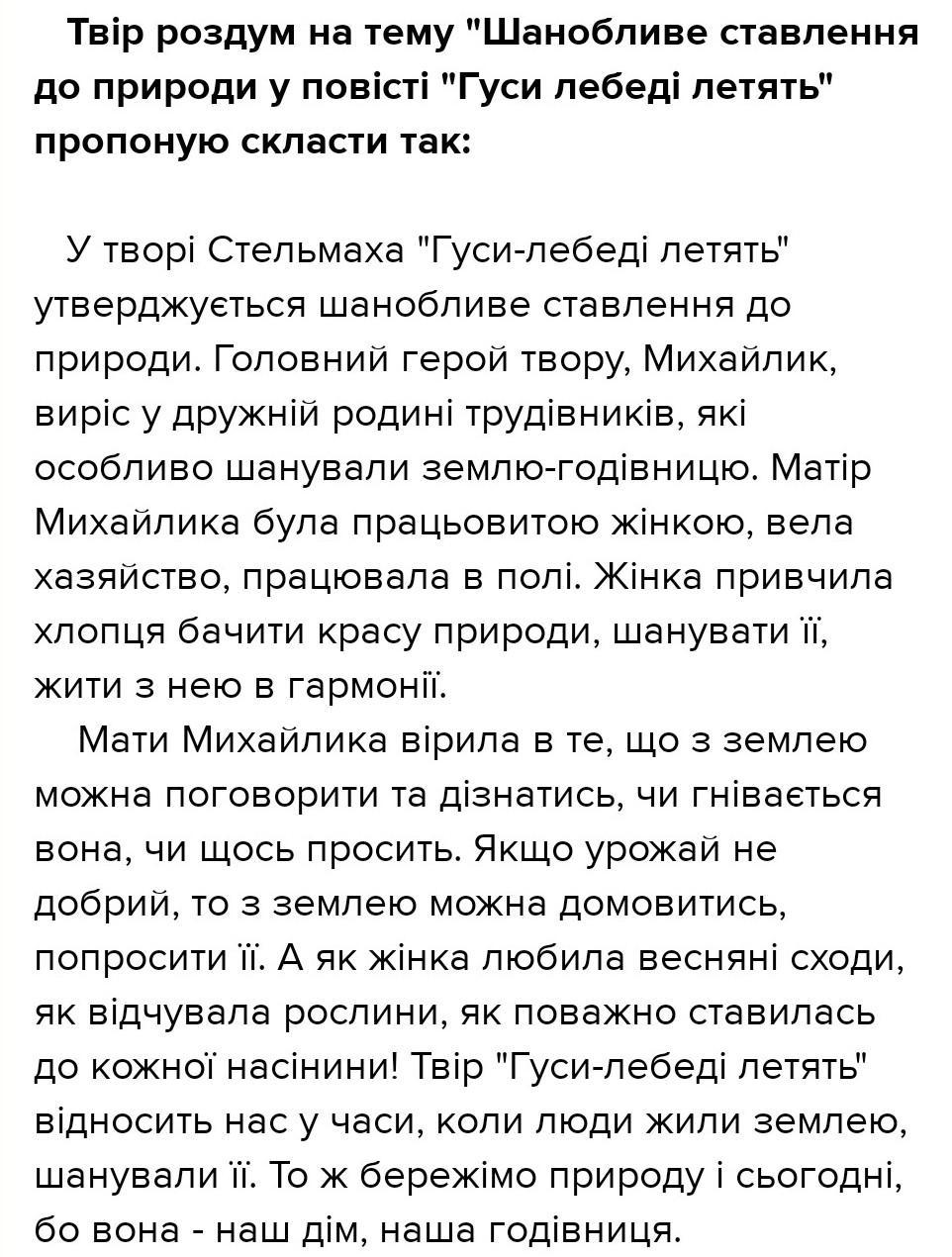 Написати твір українською мовою на тему шанобливе ставлення до природи у твірі гуси лебеді летять (обсяг 1 сторінка)