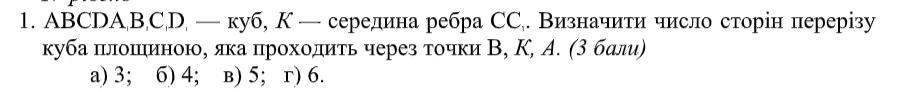 АВСDА1В1С1D1 — куб, К — середина ребра СС 1 . Визначити число сторін перерізу