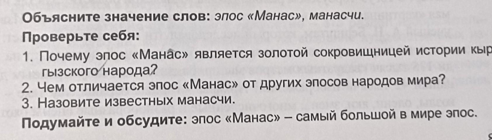 ответить на вопросы(они в прикреплённом файле), выписать имена манасчи