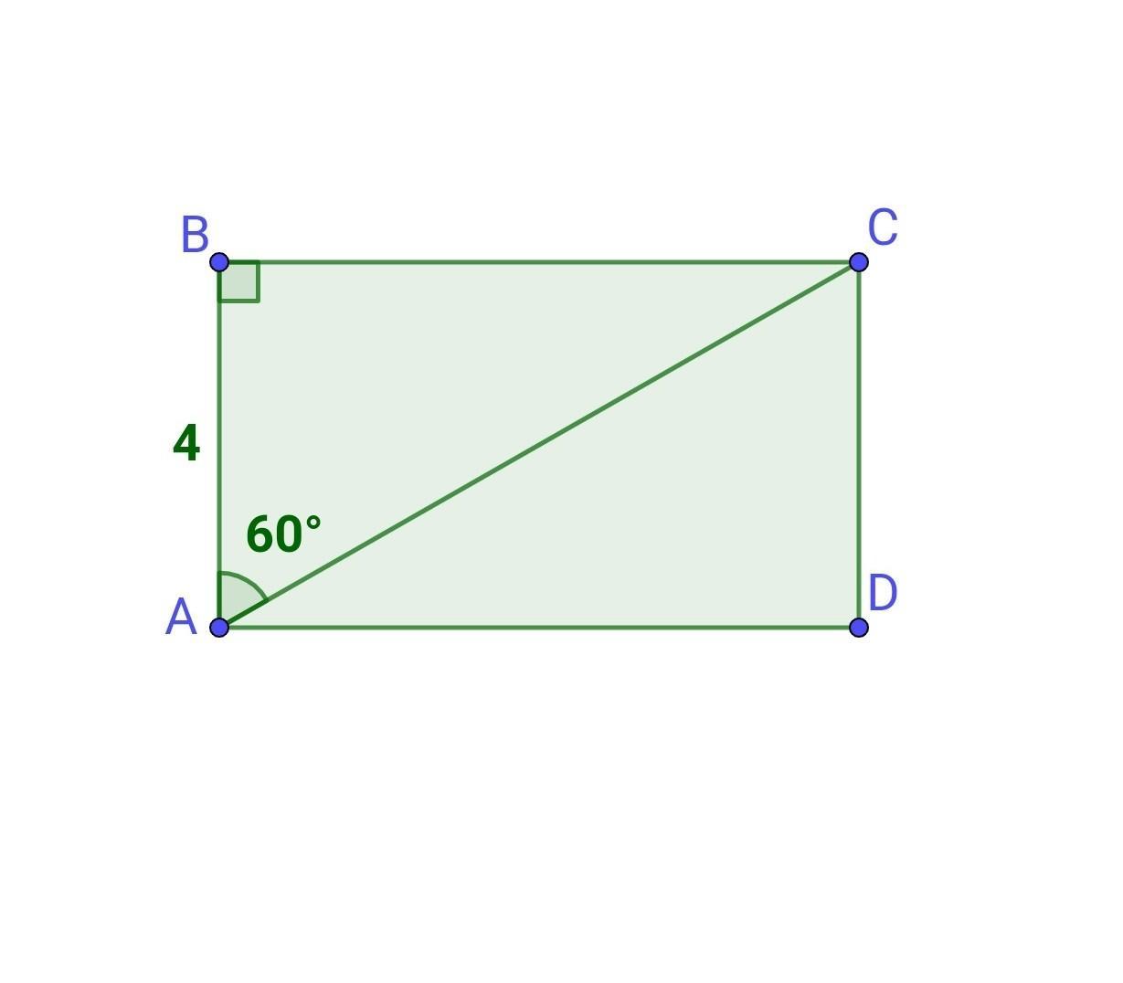 Нехай ABCD - даний прямокутник. АВ = 4 см, АС - діагональ, ∠ВАС=60°.