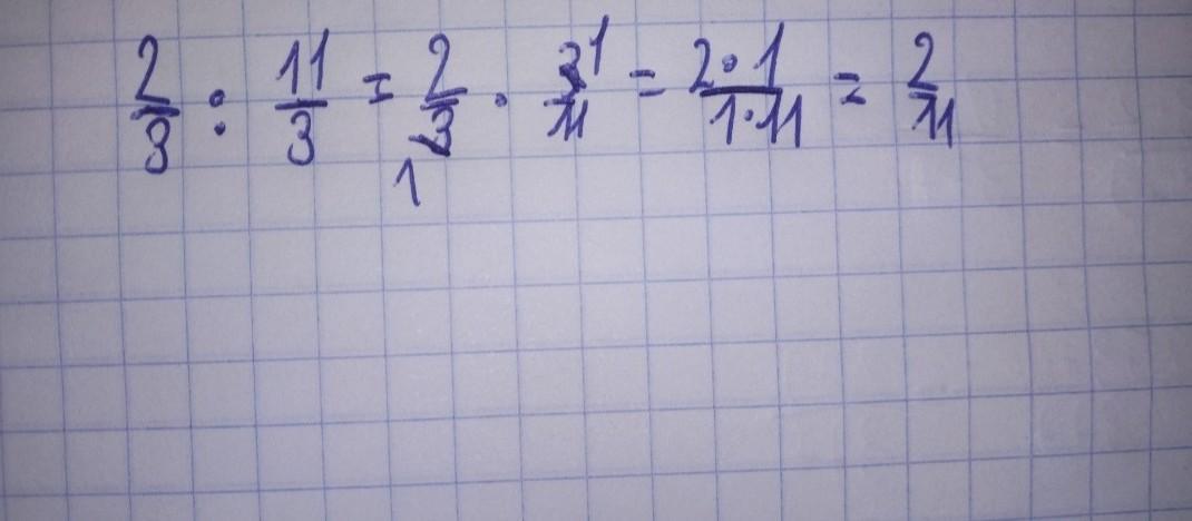 2/3: 11/3= 2×3/3×11= 6/33 = 2×3/11×3= 2/11