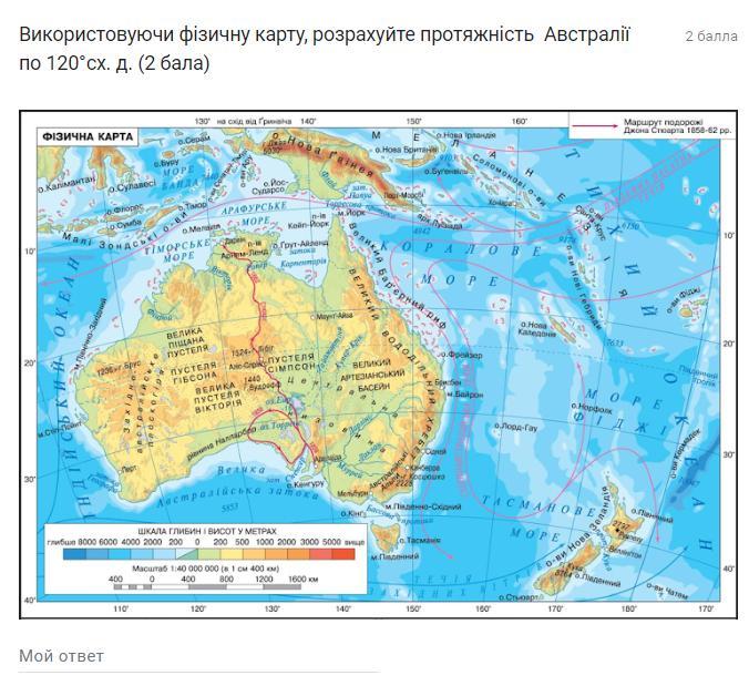 Відповідь: протяжність Австралії по 120 меридіану дорівнює 14° або 1554 км.