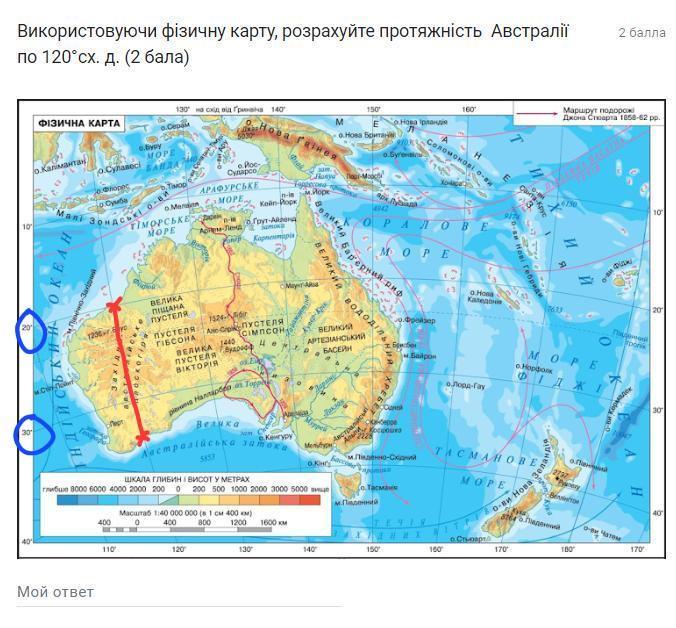 Щоб знайти протяжність Австралії по 120 меридіану для початку потрібно знайти крайні точки.