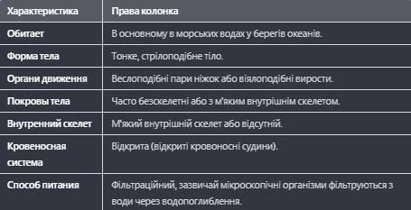 Составьте характеристику ланцетника, заполнив правую колонку таблицы. Где обитает, Форма тела, Органы движения, Покровы тела, Внутренний скелет Кровеносная система Способ питания