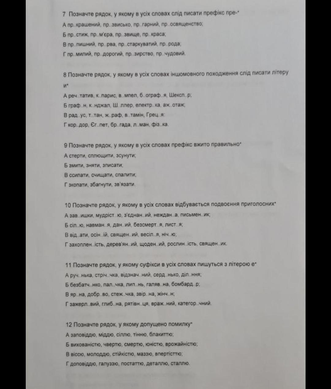 Відповідь: 7)Г; 8)Г; 9)Б; 10)В; 11)А; 12)В;