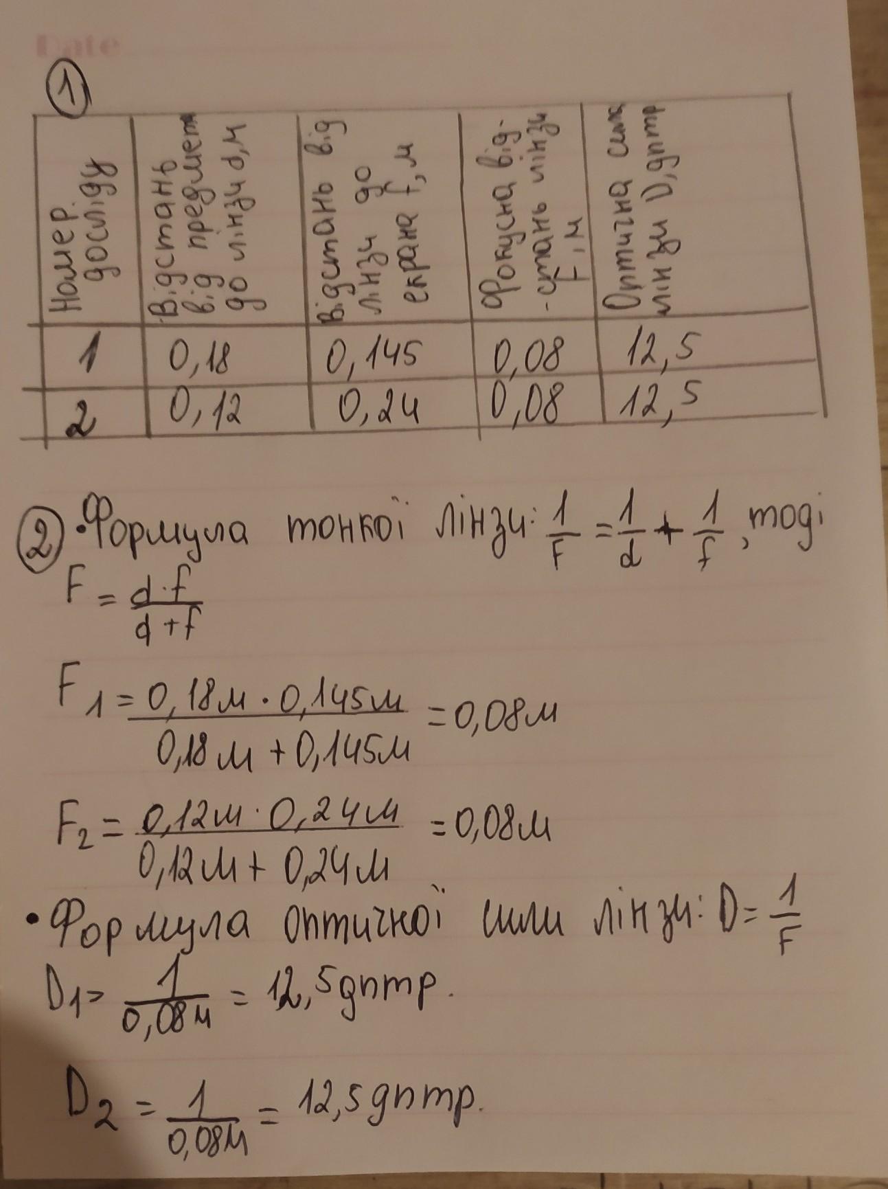 Надіюся я правильно зрозуміла завдання,вимірювала це самостійно,все записано в таблиці,вибачте,що не акуратно,просто на швидку руку.Також робила цю лабораторну в школі,обожнюю 9 клас:/