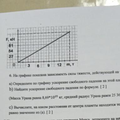 6. На графике показана зависимость силы тяжести, действующей на тело вблизи планеты Уран, от массы тела. а) Определите по графику ускорение свободного падения на этой планете.