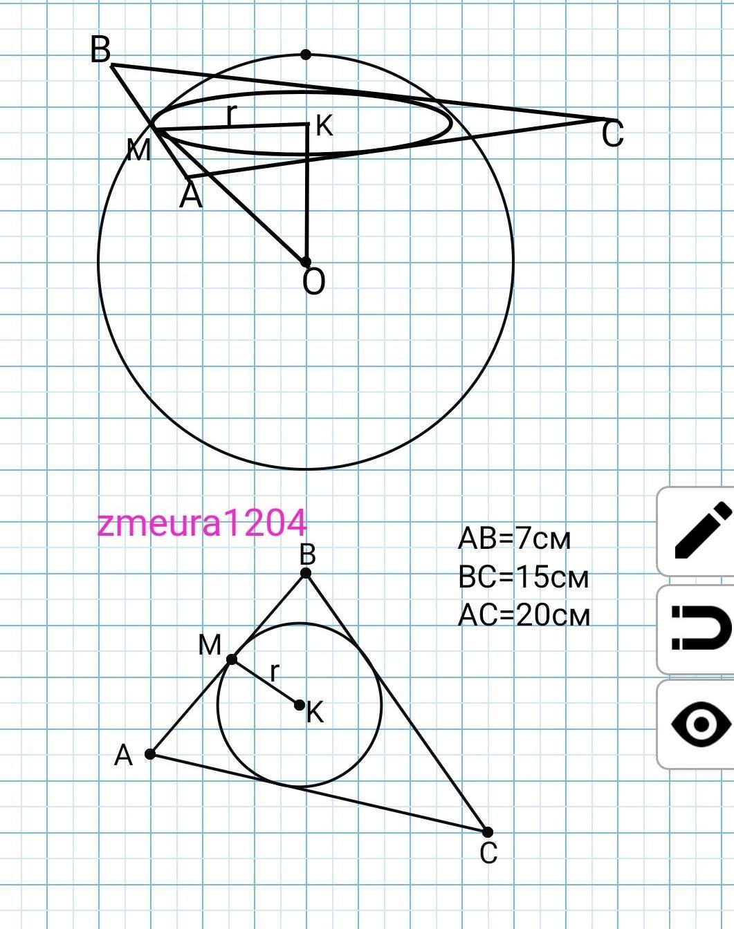 р=(АВ+ВС+АС)/2=(7+15+20)/2=