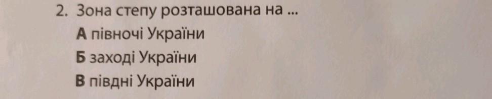 Ответ: в, Степова зона розташована на південь від Лісостепу і витягнута вздовж Азово-Чорноморського узбережжя на 1075 км, а з півночі на південь до Кримських гір - на 500 км. Степ займає 240 тис. км2, тобто 40% від загальної площі України.