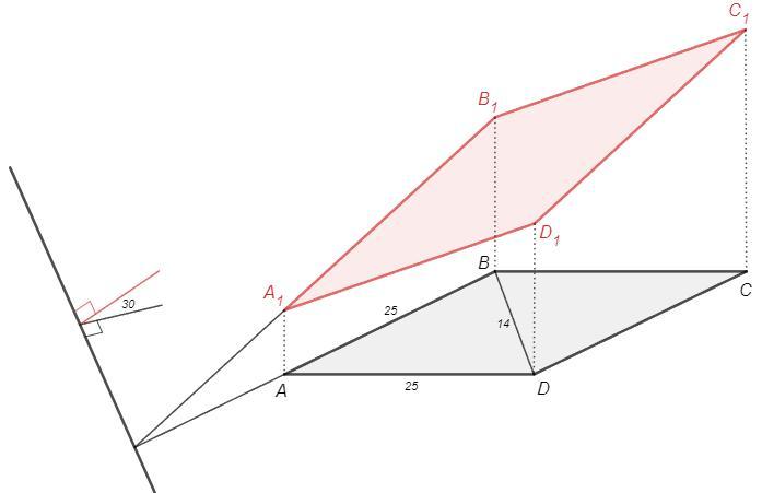 S(A1B1C1D1) =S(ABCD)/cos30° =336*2/√3 =224√3 (см^2)