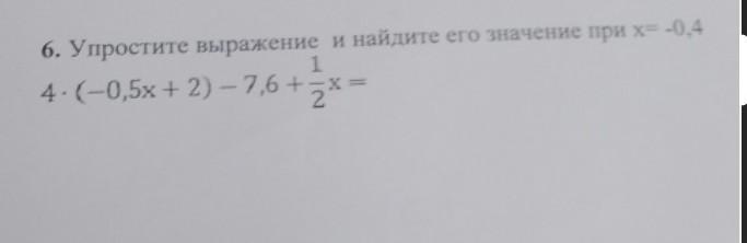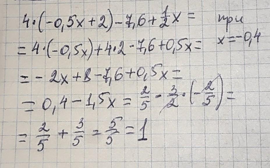 Пошаговое объяснение: 4*(-0,5х+2) -7,6+1/2Х=-2х+8-7,6+0,5х=-1,5х+0,4