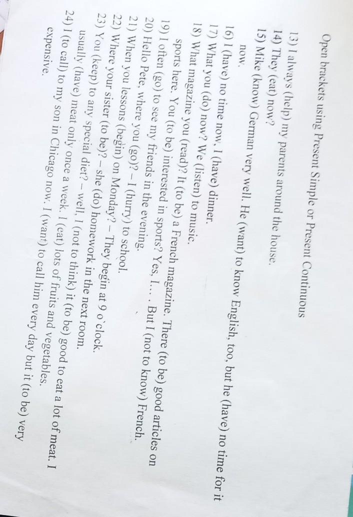 15 Mike knows German very well. He wants to know English, too, but he has no time for it now.