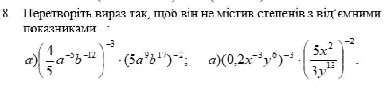 8 . a ) ( 4/5 a⁻⁵b⁻¹² )⁻³ * ( 5a⁹b¹⁷ )⁻² = 4⁻³ * 5³a¹⁵b³⁶ * 5⁻² * a⁻¹⁸b⁻³⁴ =