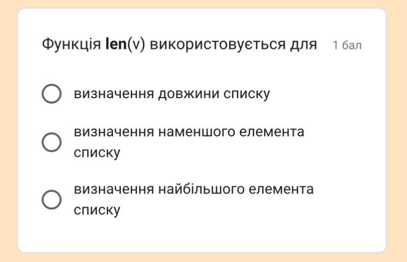 Правильный ответ - это визначення довжини списку. Функция len() возвращает длину списка, то есть количество элементов в нем.