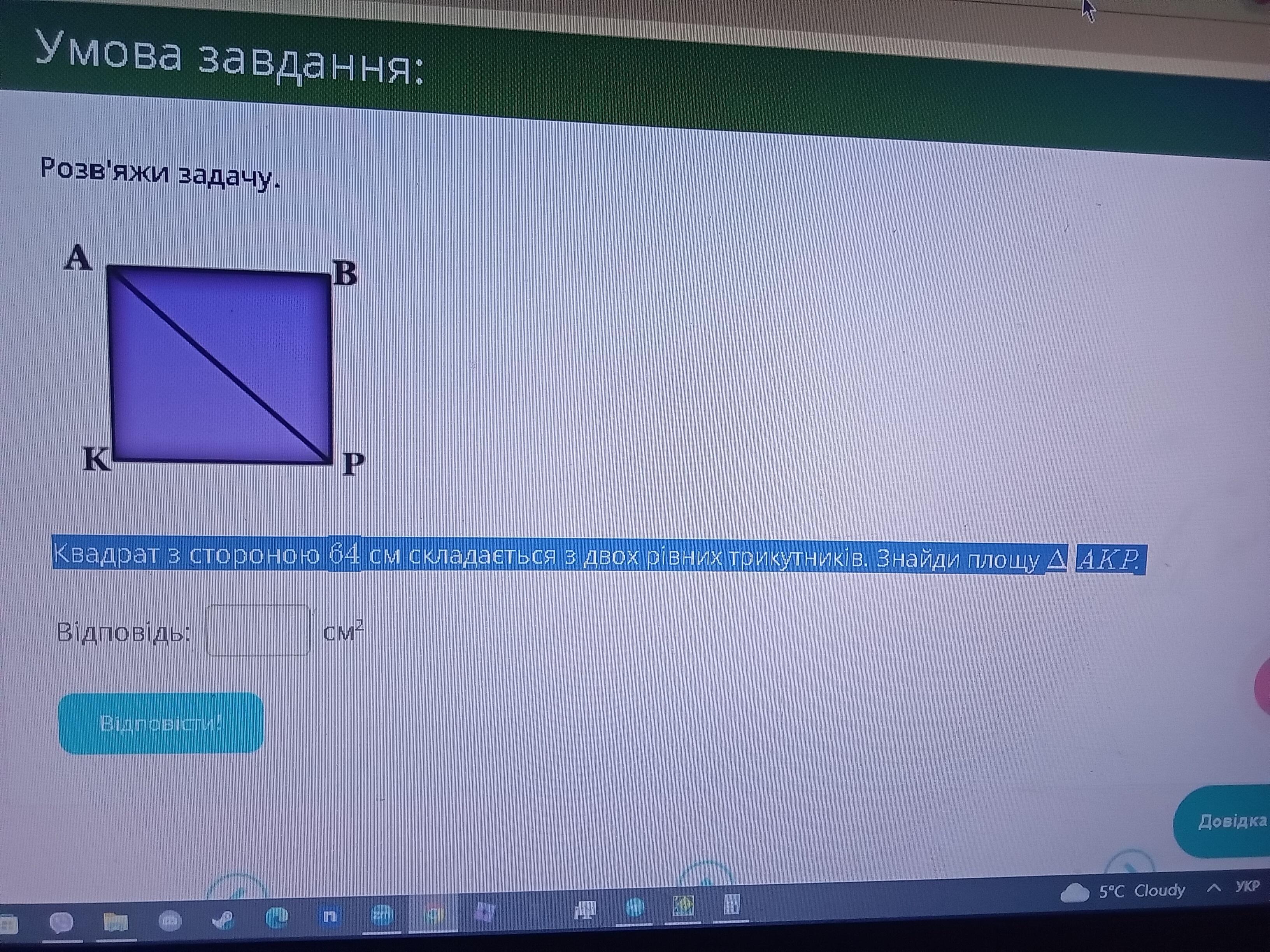 Два данных треугольника равны, *так как диагональ в квадрате, образует 2 одинаковых треугольника*, отсюда следует что площадь треугольника AKP = S : 2