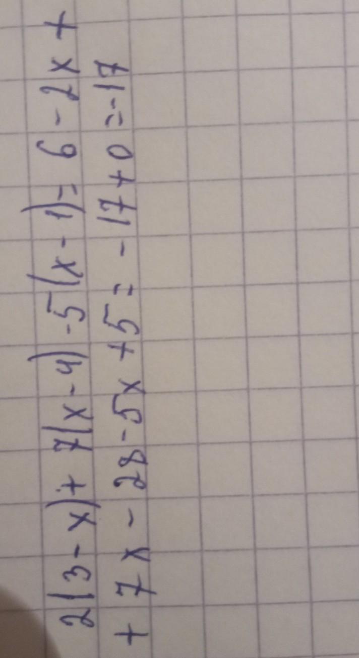 2(3-х)+7(х-4)-5(х-1)=6-2х+7х-28-5х+5=-17+0=-17