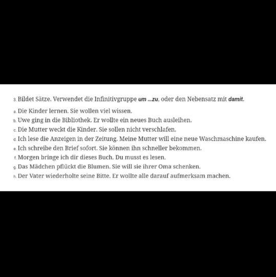 Ich lese die Anzeigem in der Zeitung,damit meine Mutter eine neue Waschmaschine kaufen.