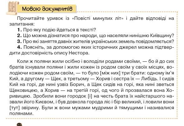 - З тексту можна дізнатися, що народи, що населяли територію нинішньої Київщини, були організовані у родові спільноти (племена), які володіли родами своїми.