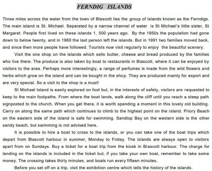 Read the text about Ferndig Islands to decide if each sentence is True or False.