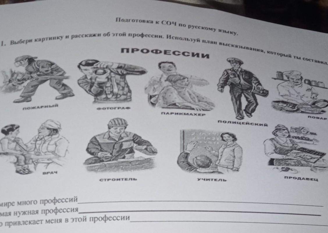 Выбери картинку и расскажи об этой профессии. Используй план высказывания, которые ты составил.
